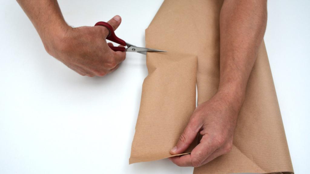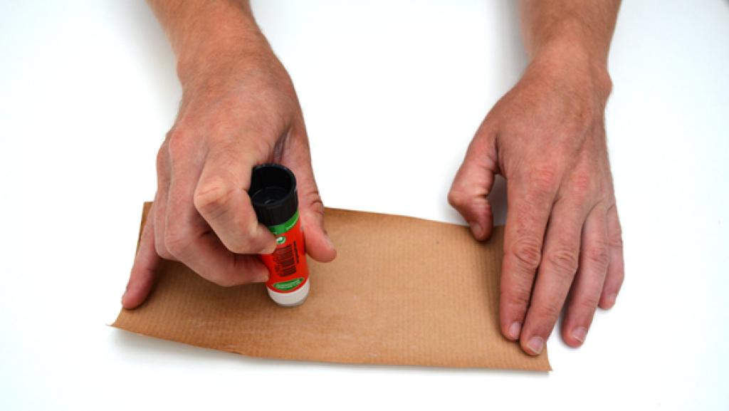 Trage auf eine Seite des Packpapiers Kleber auf. 4. Schritt