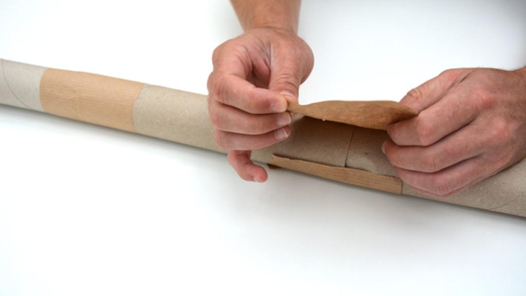 Umwickle die Verbindungsstücke mit dem Packpapier. So halten die einzelnen Rollen fest zusammen. 5. Schritt