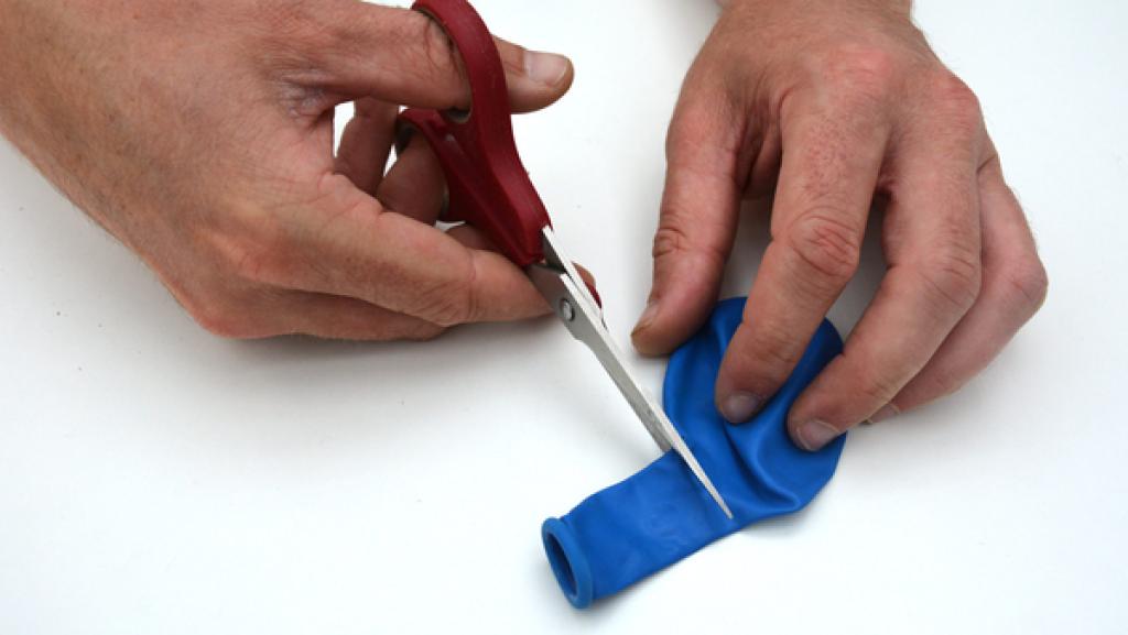 Schneide mit einer Schere den Hals des Luftballons ab. 7. Schritt