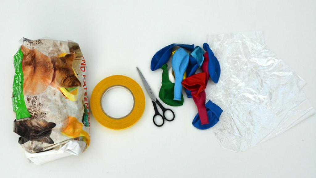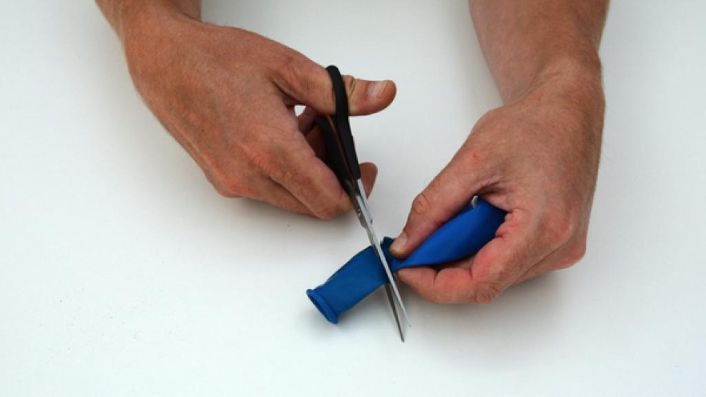 Schneide den Hals von drei Luftballons mit einer Schere ab. 4. Schritt