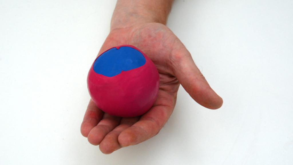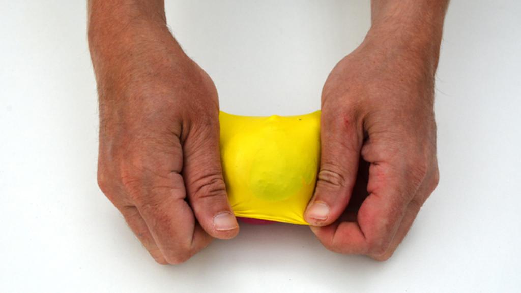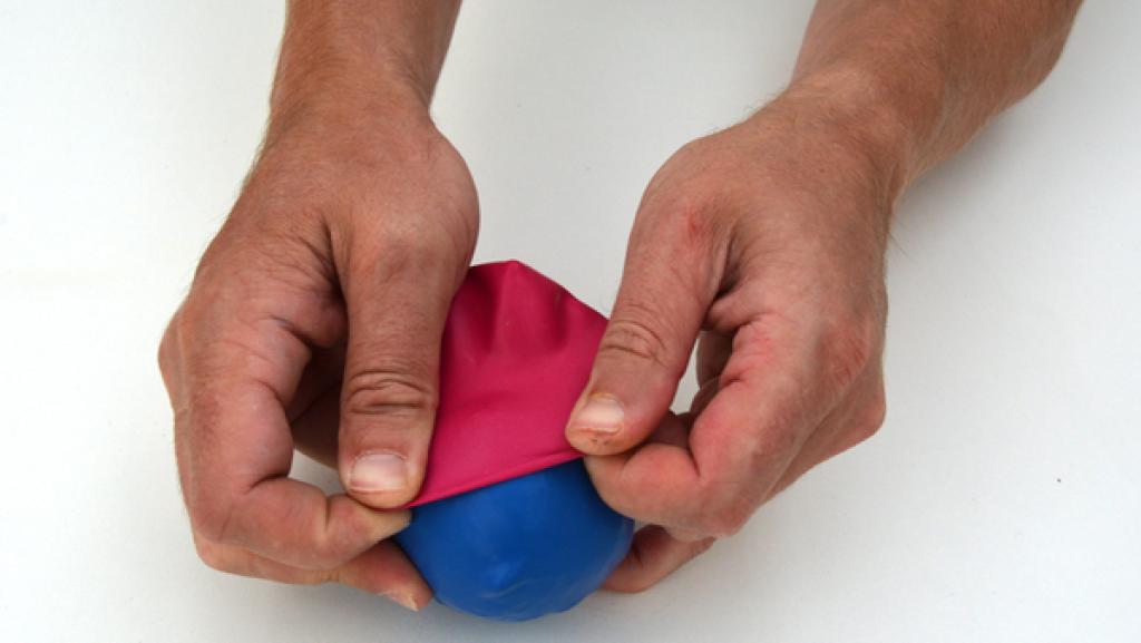 Stülpe den letzten Luftballon drüber. Dieser Luftballon bestimmt die Farbe des Balles. 8. Schritt