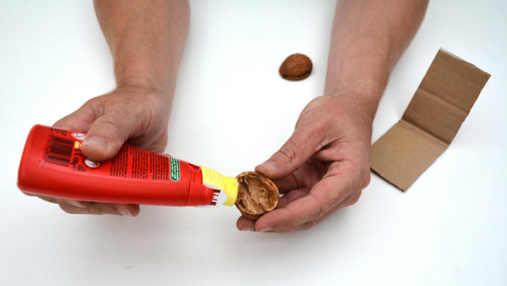 - 2 Kronkorken, Walnussschalen oder Muscheln